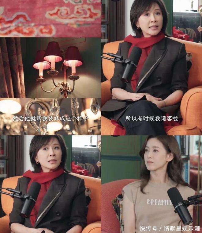 聊到装修,刘嘉玲说设计师大胆用了红绿撞色。正常主持人怎么也得跟一句,“这种配色对你来说代表什么?”或者,“这种大胆审美和你性格有关吗?”